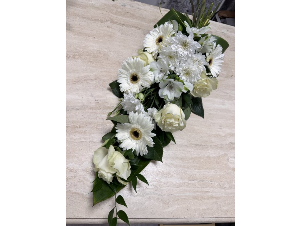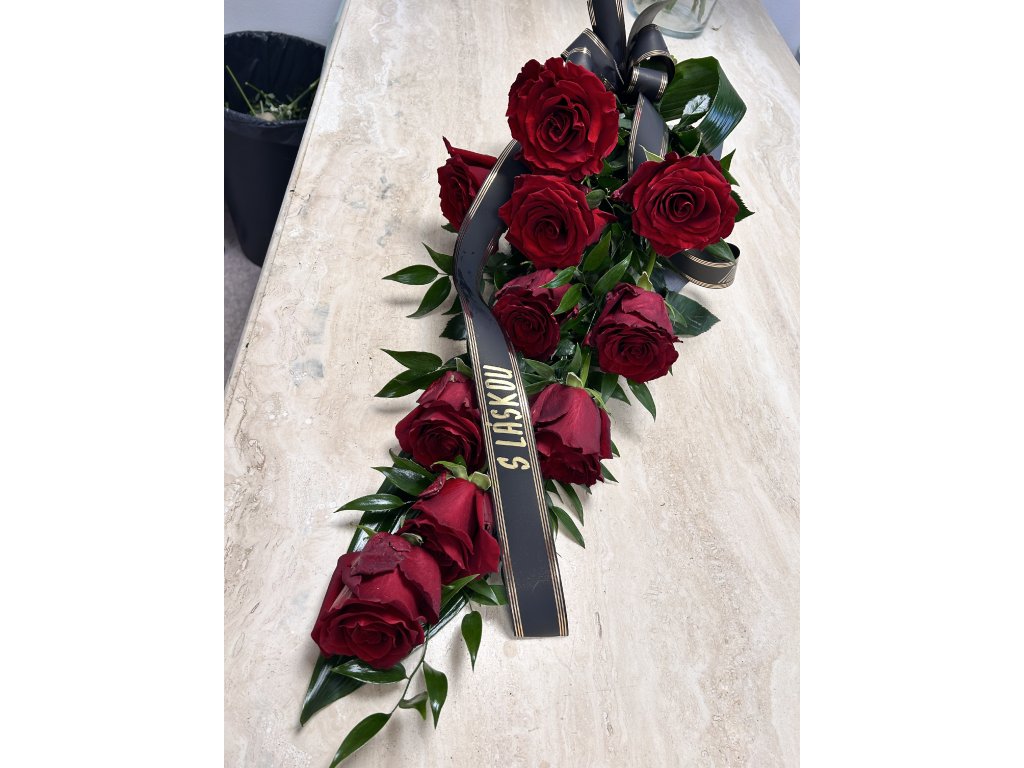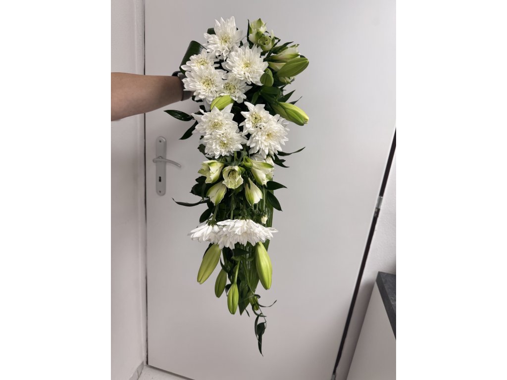Smuteční kytice za 1000 Kč pro poslední rozloučení, kondolenci nebo tichou vzpomínku. Barvu si volíte sami – pokud si přejete kombinaci dvou barev nebo konkrétní druh květin, napište nám to prosím do poznámky v košíku. Také nezapomeňte připojit nápis, který chcete na napsat na stuhu, a zda to bude zlatým či stříbrným fixem.