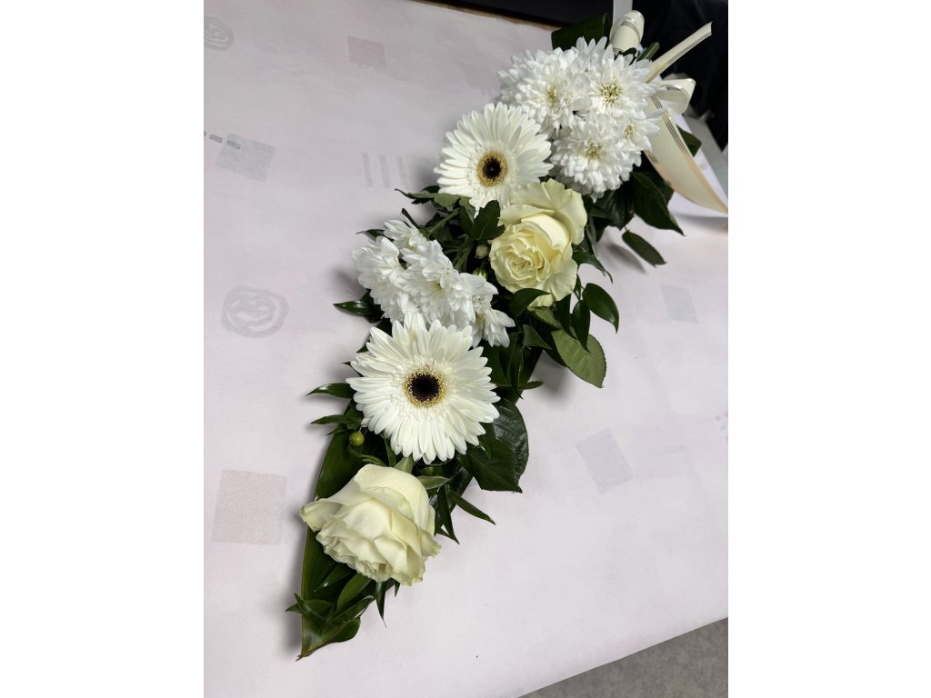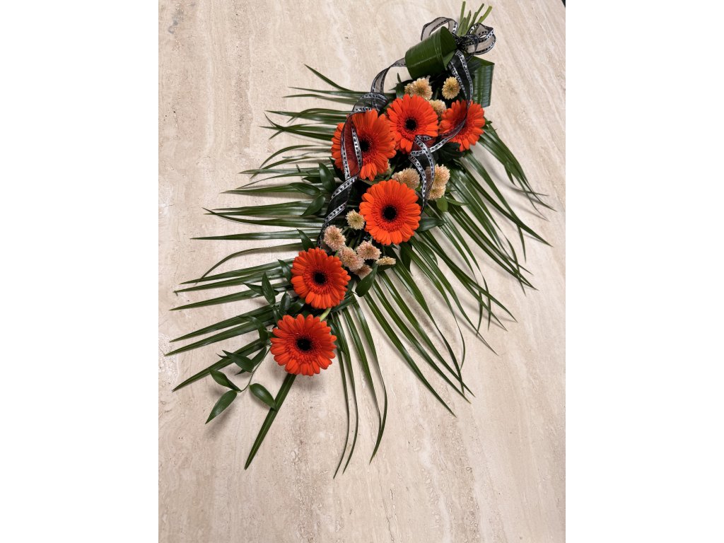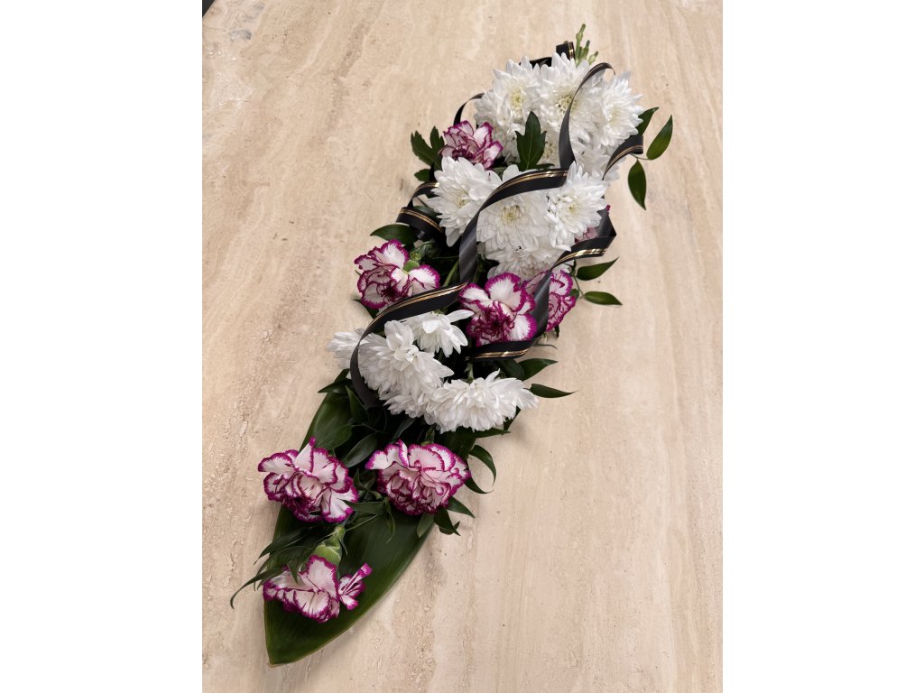 Smuteční kytice za 550 Kč pro poslední rozloučení, kondolenci nebo tichou vzpomínku. Barvu si volíte sami – pokud si přejete kombinaci dvou barev nebo konkrétní druh květin, napište nám to prosím do poznámky v košíku. Také nezapomeňte připojit nápis, který chcete na napsat na stuhu, a zda to bude zlatým či stříbrným fixem.