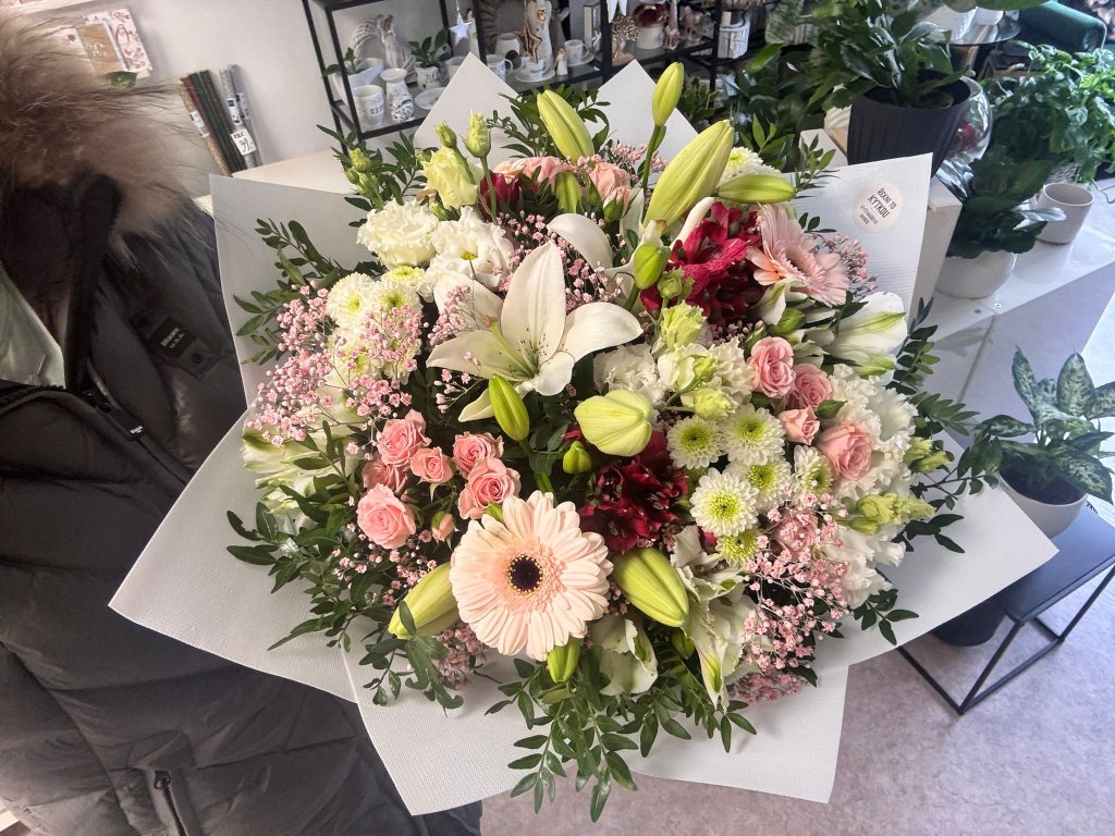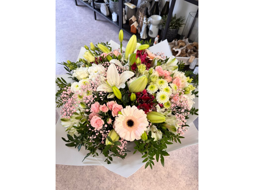 Při objednání si volíte barvu. Pokud preferujete kombinaci dvou barev nebo konkrétní druh květin, napište nám to prosím do poznámky v košíku. Stejně tak připojte text, pokud si přejete kytici s věnováním.
